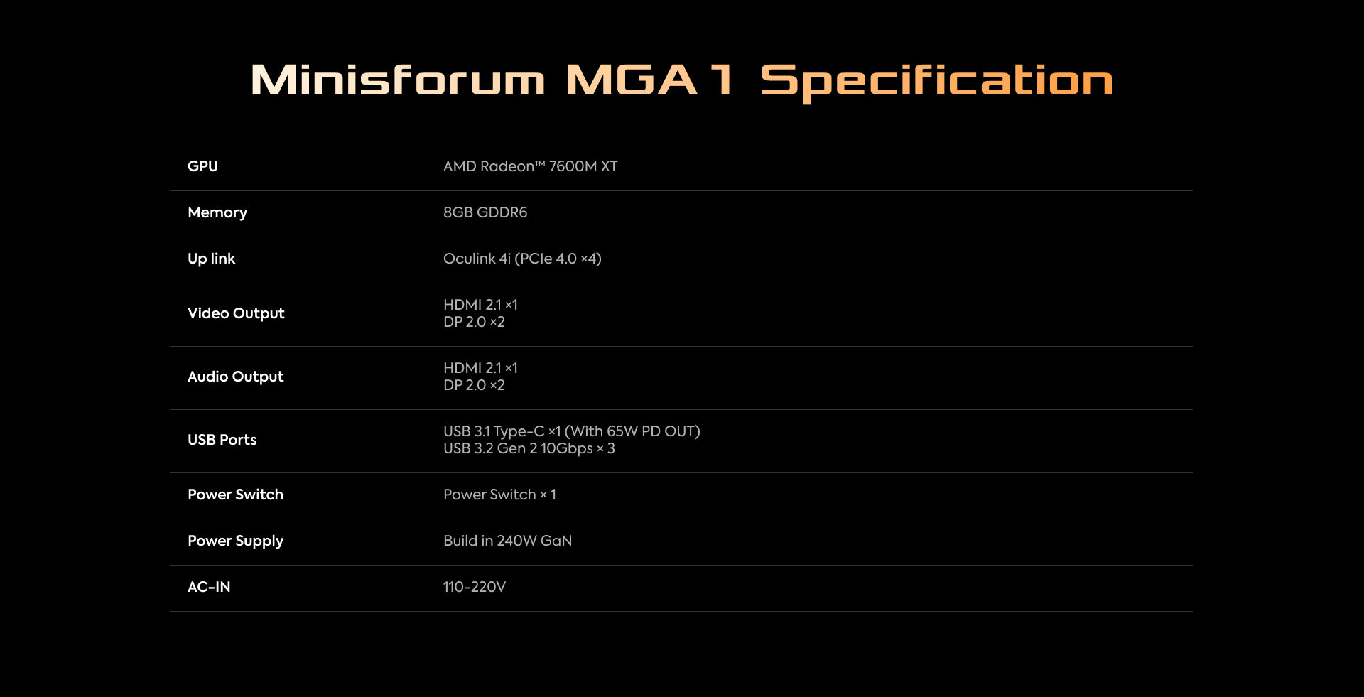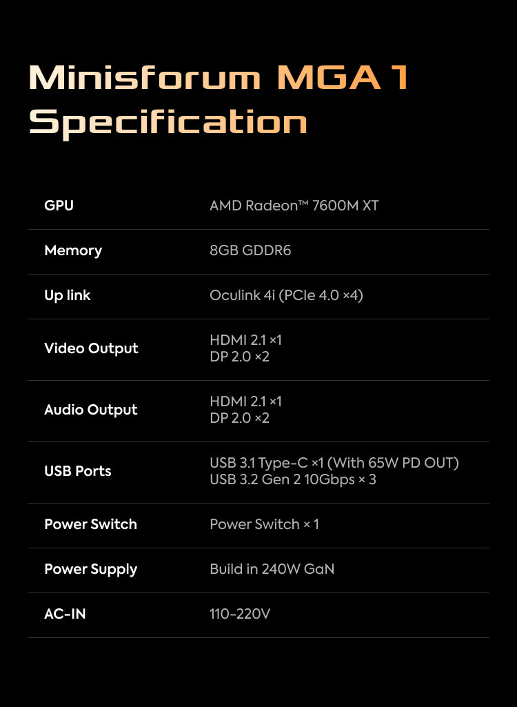 MINISFORUM estación de acoplamiento eGPU MGA1