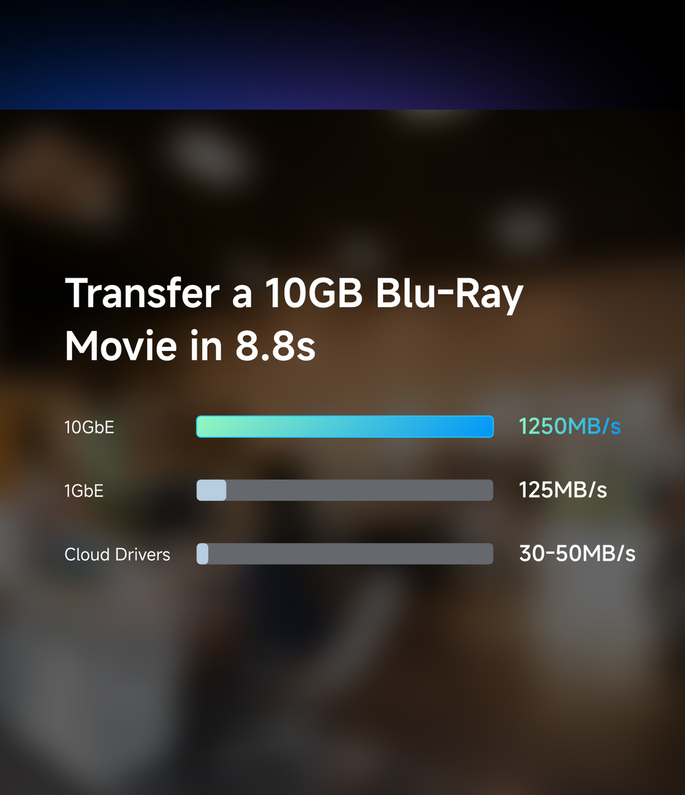 10GbE networking delivers ultra-fast transfers for cross-team workflows, massive file handling, and heavy multitasking with ease.