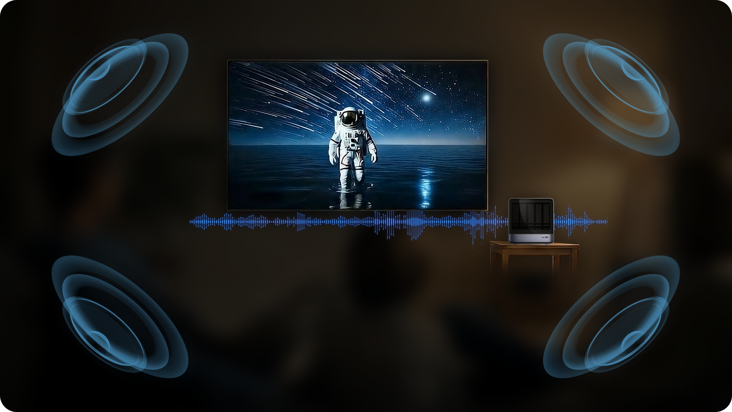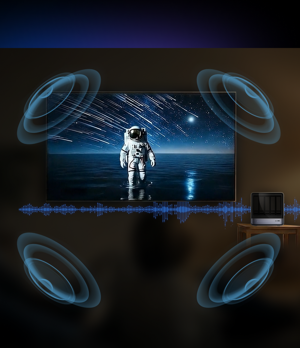 Home Theater: Poster scraping, HDMI output, full-format playback, and real-time/offline transcoding. Music Hall: All lossless formats supported, and HiFi DSD (dsf/dst) decoding.