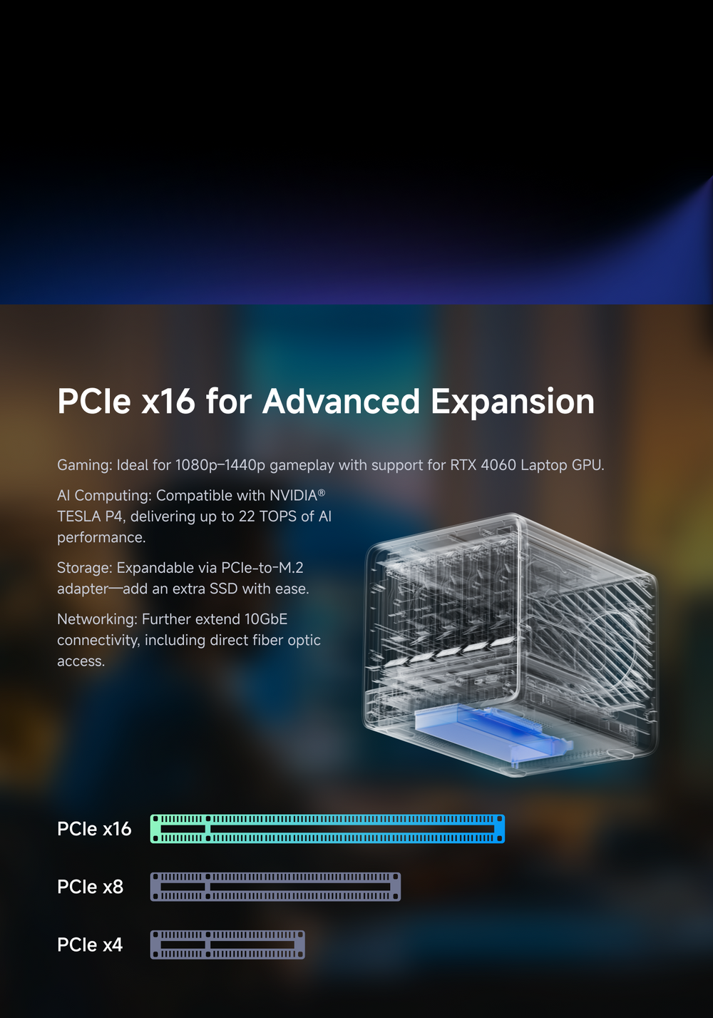 AI Computing: Compatible with NVIDIA® TESLA P4, delivering up to 22 TOPS of AI performance..
