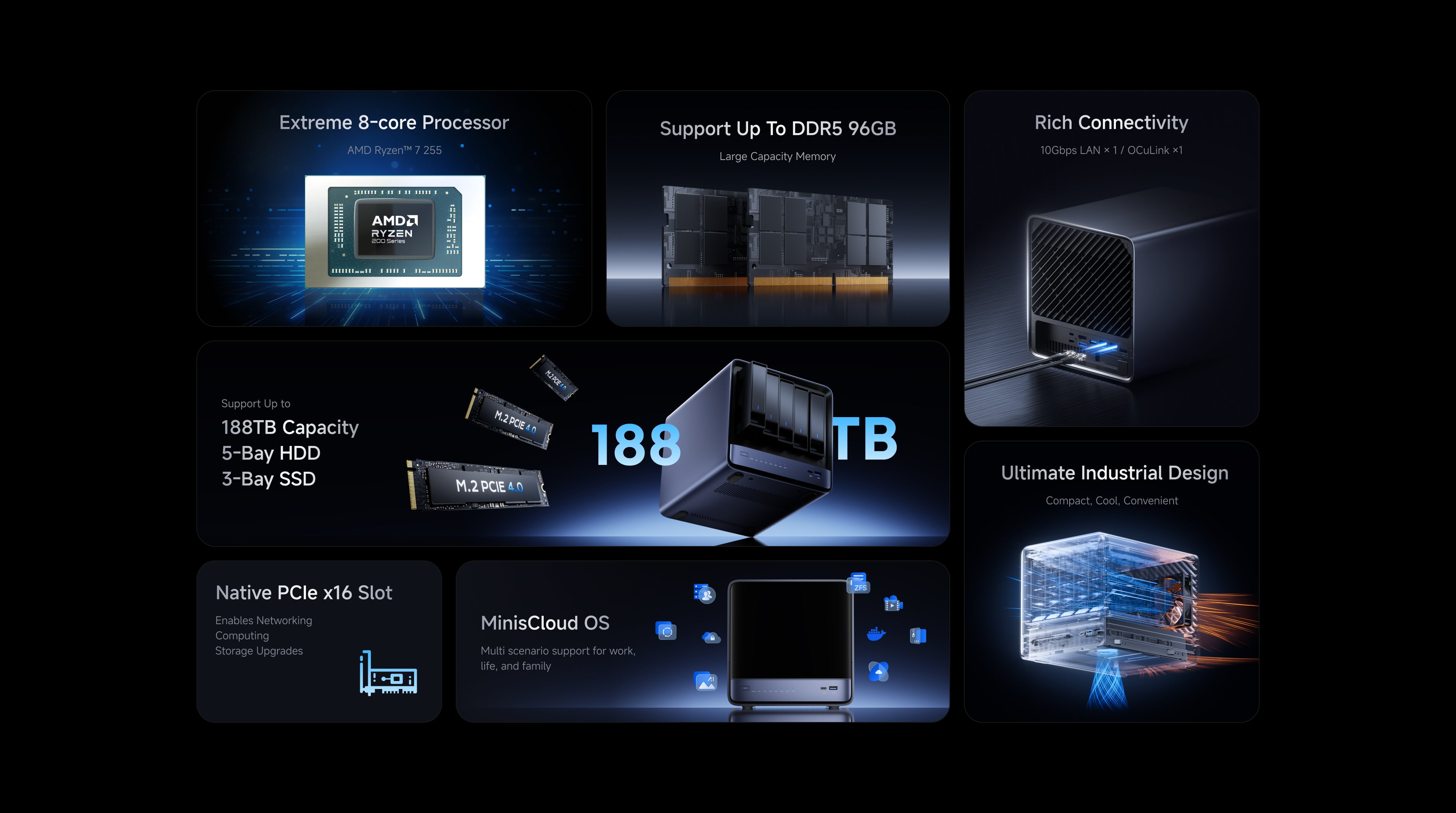 ECC memory×ZFS snapshots: dual-layer protection prevents accidental deletion and enables rollback for critical files, such as financial data, client records, design drafts, video projects, and more.