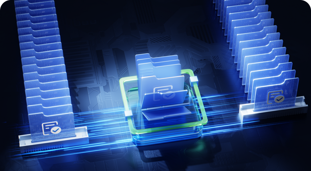 Dual-layer protection prevents accidental deletion and enables rollback for critical files, such as financial data, client records, design drafts, video projects, and more.