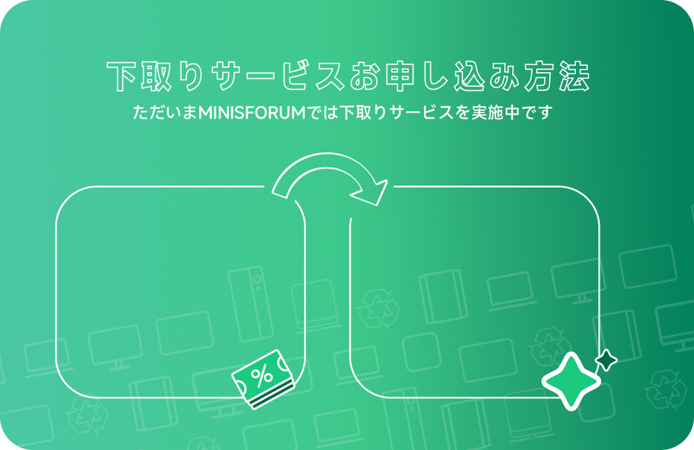旧パソコンを新しいパソコンに交換するポリシーは、日本市場で「UM890 Pro」、「UM790 Pro」、「MS-01」を購入したユーザーのみ適用されます。