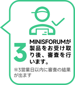 Minisforum は旧機を受け取り、損傷評価額に異議がない場合、3営業日以内に割引クーポンを発行します。